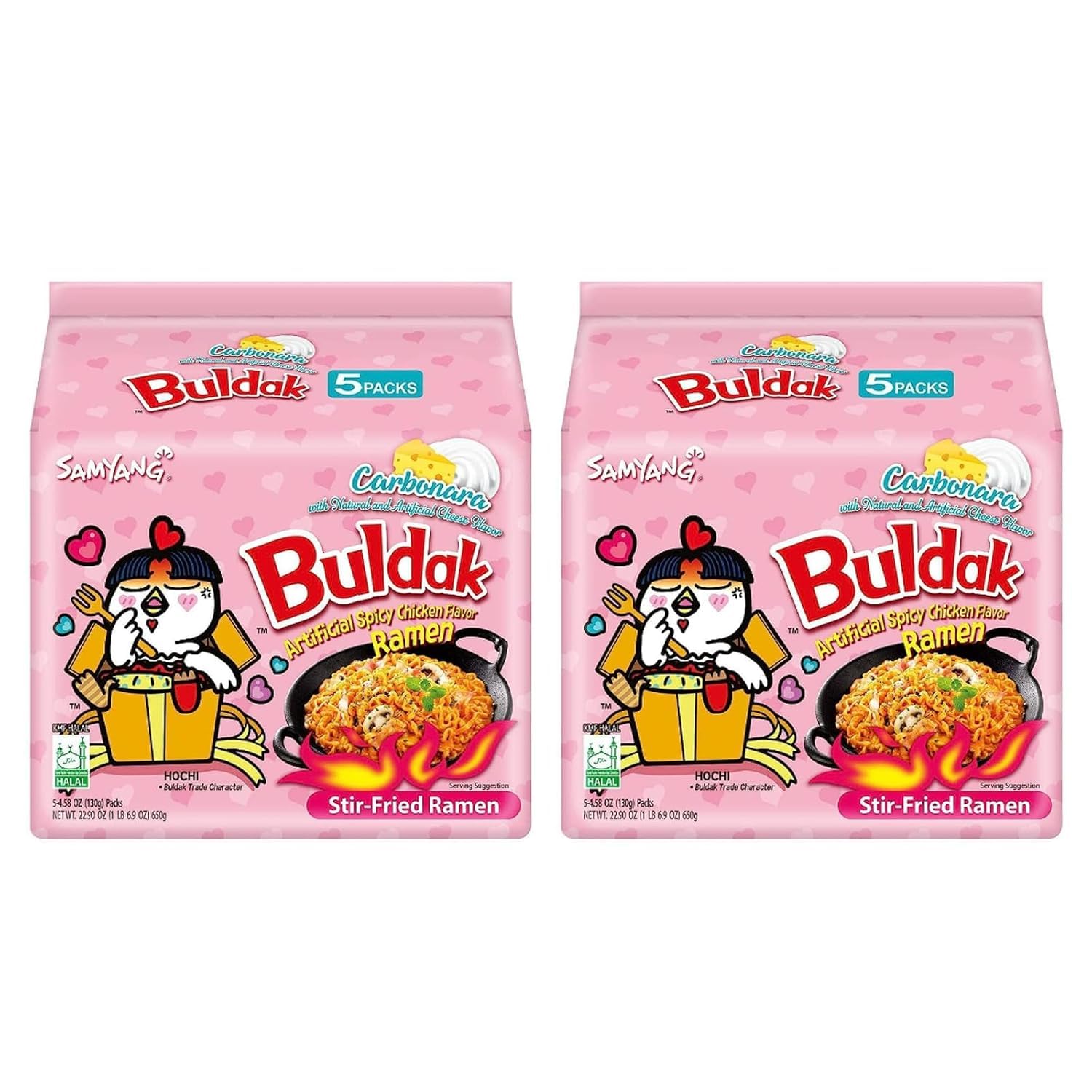 Buldak Spicy Ramen, Carbonara Hot Chicken Ramen Korean Stir-Fried Instant Noodle 10 Pack Samyang