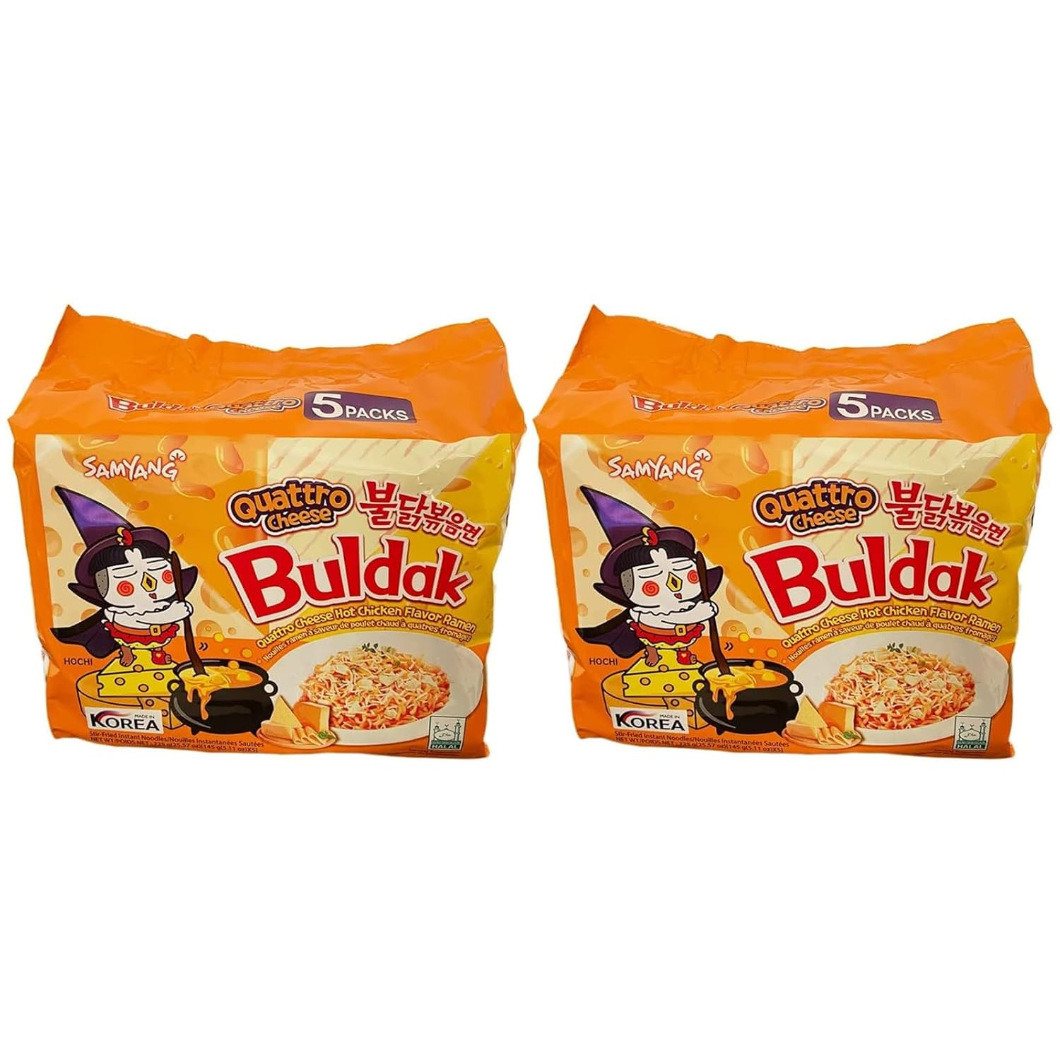 Buldak Spicy Ramen, Hot Chicken Ramen, Korean Stir-Fried Instant Noodle, Cheese, 1 Bag with 5 Pack