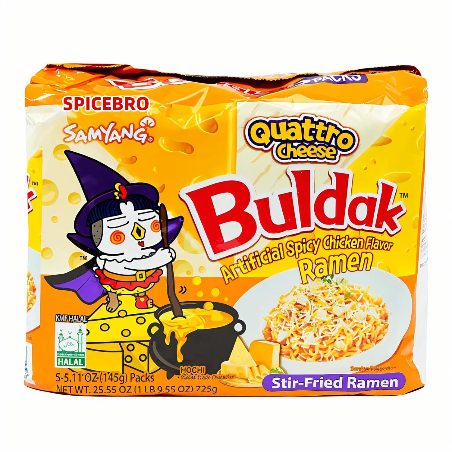 - Korean Unique Quattro Cheese Spicy Chicken Ramen with buldak twist & Bold flavors of chewy Korean noodles and spicy sauce