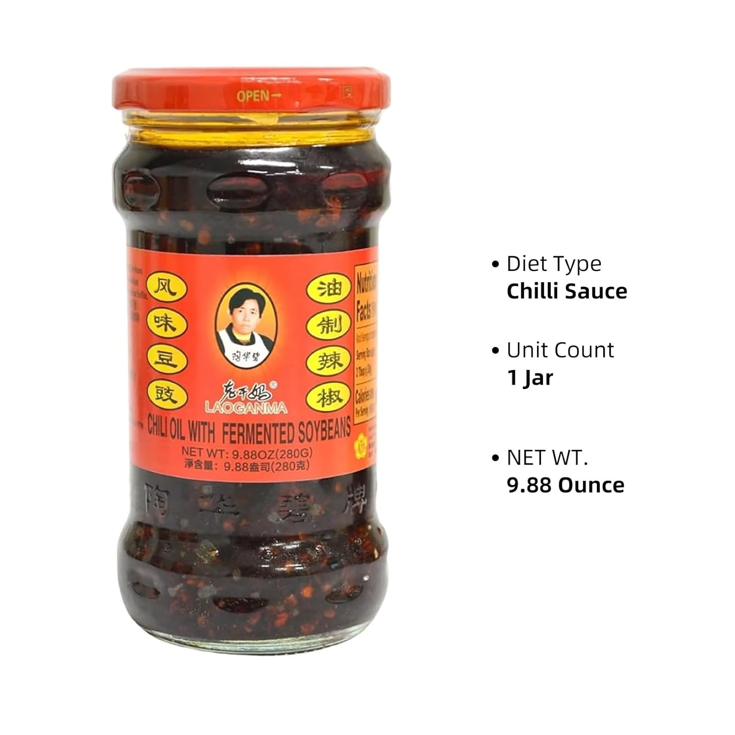 Lao Gan Ma Chili Oil with Fermented Soybeans 9.88OZ, LGM Chili Sauce 280g