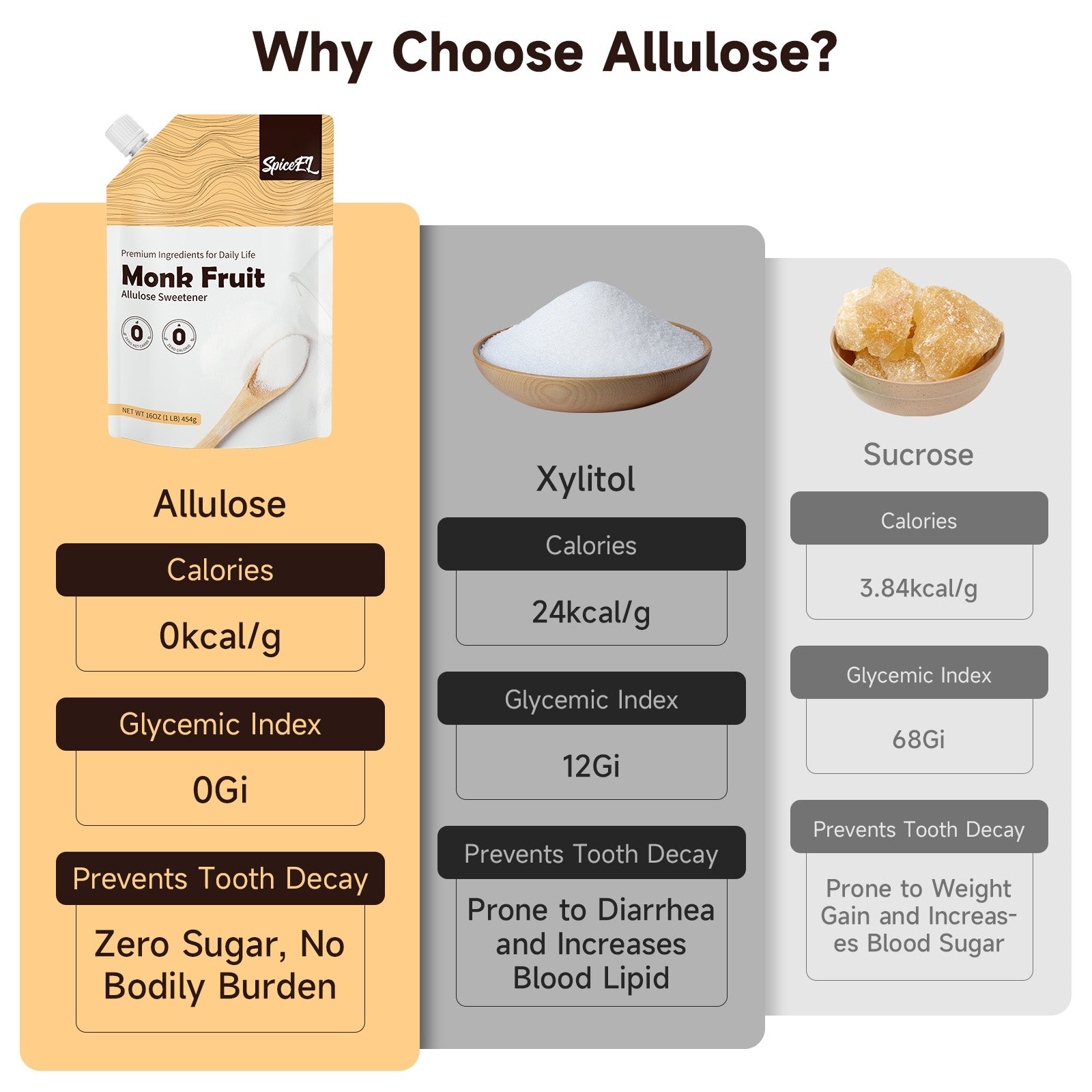 Healthy Friendly: Allulose sweetener is not absorbed by the body and is excreted within 24 to 48 hours. Allulose monkfruit sweetener does not affect blood sugar and insulin levels, making it a safe sugar substitute for diabetics or people with other diseases.