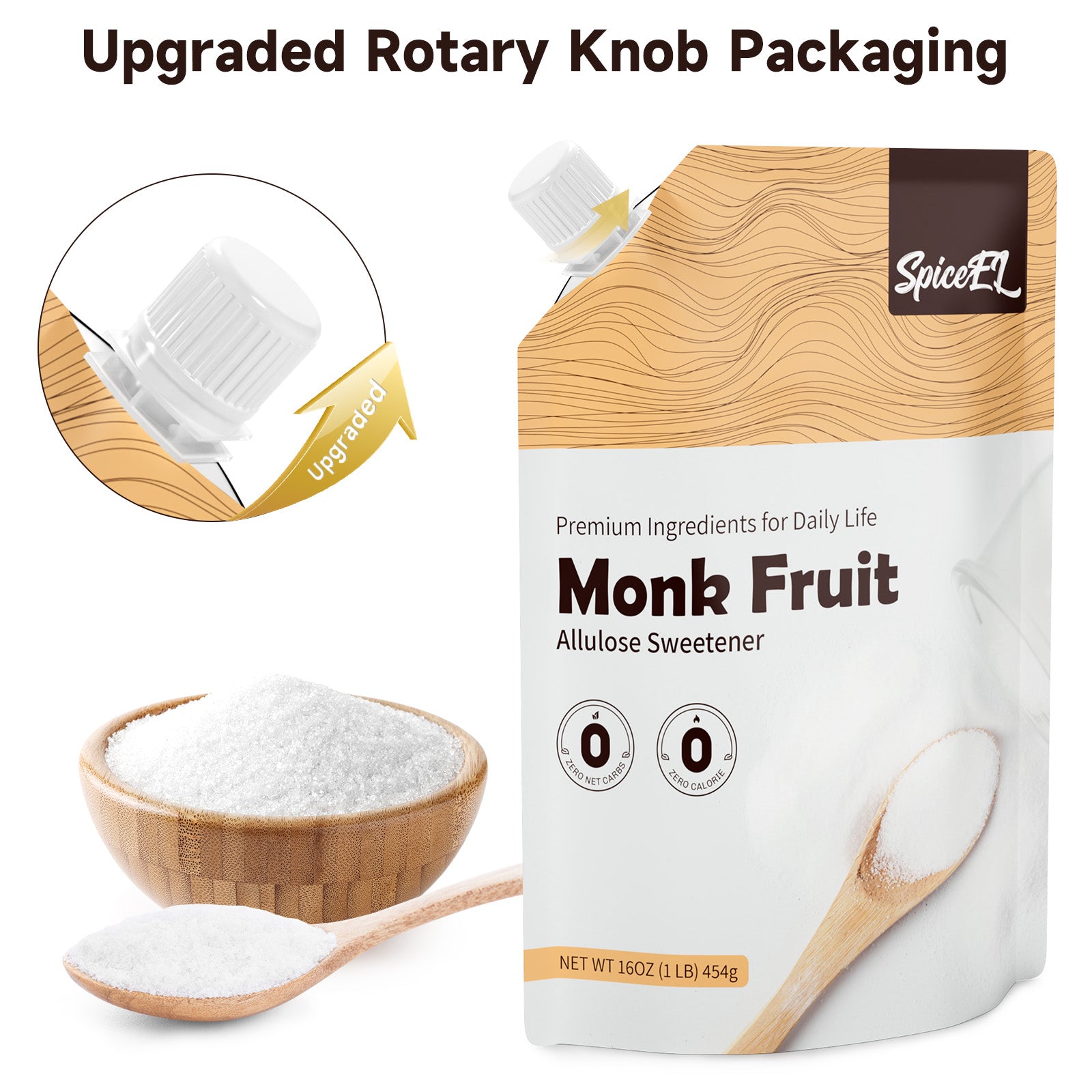 Natural Sweetener: Monk fruit sweetener is rich in natural nutrients and antioxidants. Allulose is a rare monosaccharide that naturally exists in figs and other fruits. Monk fruit extract is gluten-free, kosher, and free from harmful additives, and artificial chemicals.